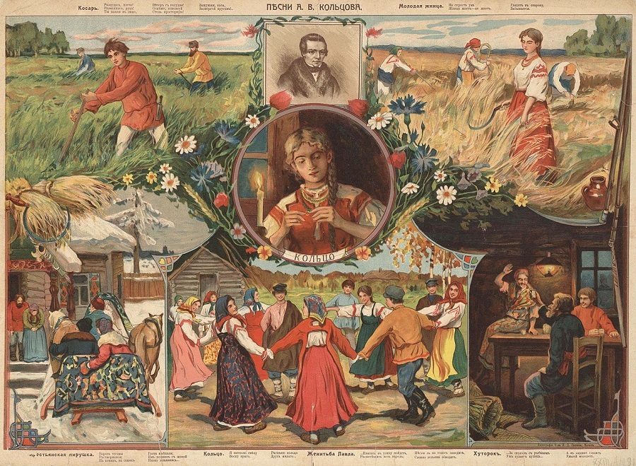В конце XIX, начале ХХ века издавались лубки по мотивам произведений русского литератора Николая Карамзина, купца, и по призванию — поэта-деревенщика Алексея Кольцова, Михаила Лермонтова, баснописца Ивана Крылова и других русских писателей и поэтов.