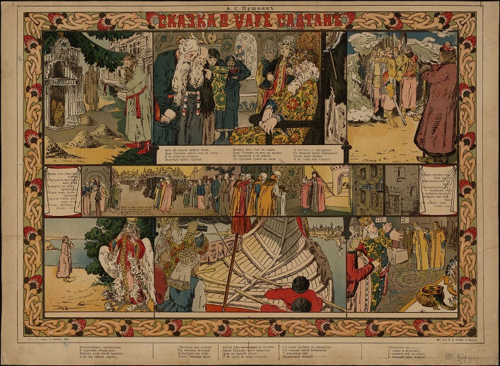 Неизменной популярностью пользовались листы по сказкам Александра Сергеевича Пушкина.