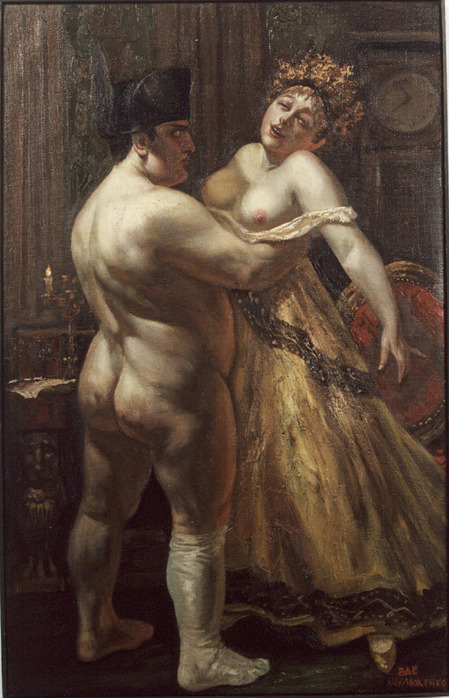 Василий Шульженко - русский художник, воспроизводящий на полотнах образы глубинки, запечатлевшиеся в его детском сознании во время поездок на дачу под Касимов. Опухшие помятые рожи, тупость, пьянство и деградация - все это пугало юного Василия, но и интересовало его, как имеет свойство интересовать все безобразное.