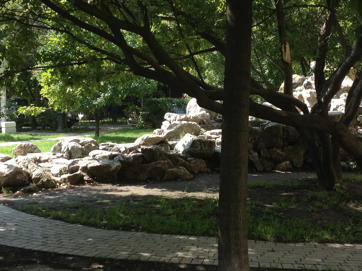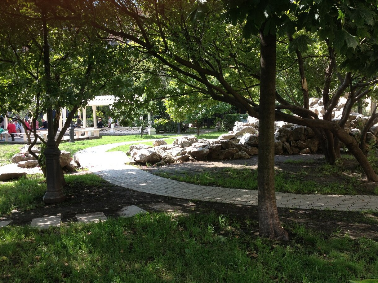Хотя, в целом, садик получился уютный. Люди любят там отдыхать. Водичка журчит... Тенек...