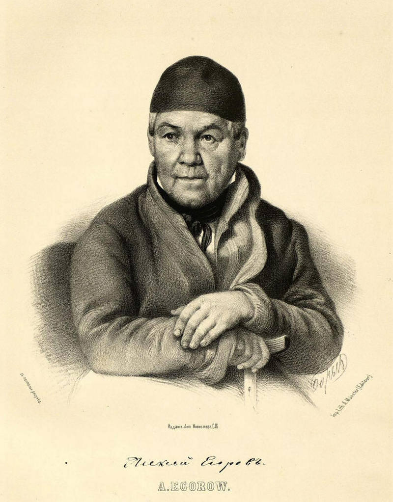 В то время, когда я познакомился с ним, ему было за семьдесят лет. Определен он был в Академию ребенком и, дойдя до натурного класса, занял место помощника профессора, а затем, как лучший ученик, был отправлен за границу. Живя в Италии, Егоров прославился как композитор и рисовальщик. Канова, Каммучини знали его и ценили; папа предлагал ему сделаться его придворным живописцем; но Егоров, как патриот и к тому же религиозный человек, не захотел изменить своему отечеству… Тогдашние любители живописи дорого платили за его рисунки. В моем собрании их семьдесят два, из которых особенно интересны два рисунка, сделанные в Италии, изображающие борющихся гладиаторов, а затем рисунок с натуры мужской фигуры в ракурсе… Об этом рисунке Алексей Егорович рассказал мне следующее. Приехав в Италию, он отправился в натурный класс, где спросили его, умеет ли он рисовать, и, получив от него ответ, что умеет, допустили в класс, где все места оказались занятыми; и ему пришлось поместиться кое-как под выставленной фигурой. Егоров в полчаса набросал всю фигуру, положил в папку, встал и начал ходить по классу, посматривая на чужие рисунки. На него обратили внимание и спросили: почему он не рисует. "Да я уже кончил", - ответил Егоров. Посмотрели рисунок – и удивились его мастерству; слава о нем как о большом мастере распространилась. Италию и итальянцев Егоров очень любил и вспоминал о них с удовольствием… Обстановка Егорова была скромная. Со старостью заказы сократились, а расходы увеличились. Лишившись места в Академии, А. Е. должен был платить за квартиру, покупать дрова, снабжать выросшего сына деньгами; дочери вышли замуж, и явился новый расход на них. Приходилось ограничивать себя, и милый профессор сам закупал сальные свечи, сам их заправлял в подсвечники; еда его была простая. Случайно узнал я от сына, Евдокимушки, что отец его поет и хорошо играет на гитаре и балалайке; при этом Вера Ивановна подосадовала на Евдокимушку, что тот выдал забаву отца на таком неблагородном инструменте. Я стал упрашивать Алексея Егоровича сыграть и спеть что-нибудь; он отнекивался, говоря, что неприлично играть на мужицком инструменте. Однако мне удалость уговорить старика, и он, взяв балалайку, сел у растворенного окна и взял несколько аккордов. Вечернее солнце садилось и окрашивало осеннее небо... Взяв еще несколько аккордов, он, шутя, запел, подыгрывая: