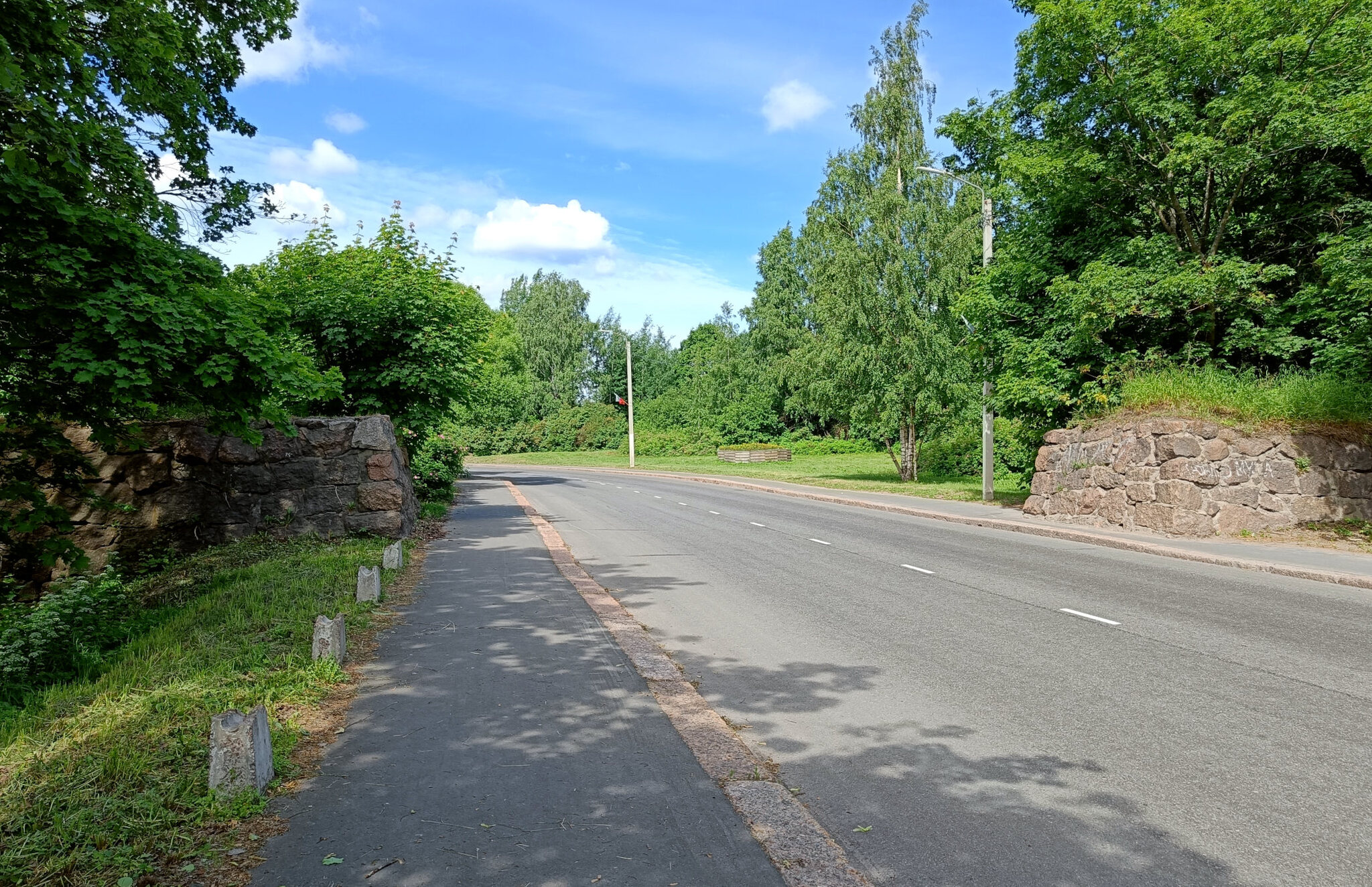 На площадь мы ещё вернёмся, а пока поднимемся по холмистой местности чуть наверх к наиболее сохранившимся остаткам укреплений. По пути на малопримечательном старом деревянном доме висит табличка с указанием Елизаветинской улицы на трёх языках: русском, финском и шведском. Кажется, теперь мы точно запомним, что на финском языке «улица» – это «katu», а на шведском – «gata». Только никакой Елизаветинской улицы на картах не значится.