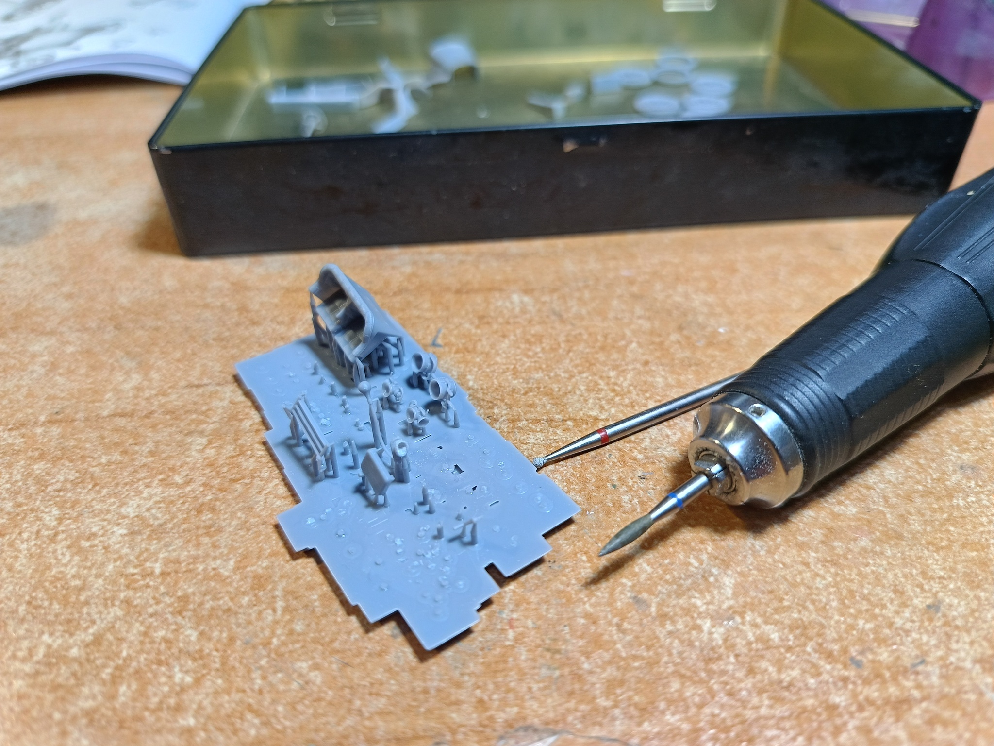 4. Мелкая доработка - вытачиваю воронку в сигнальном рожке. Использован маникюрный фрезер с алмазными насадками.