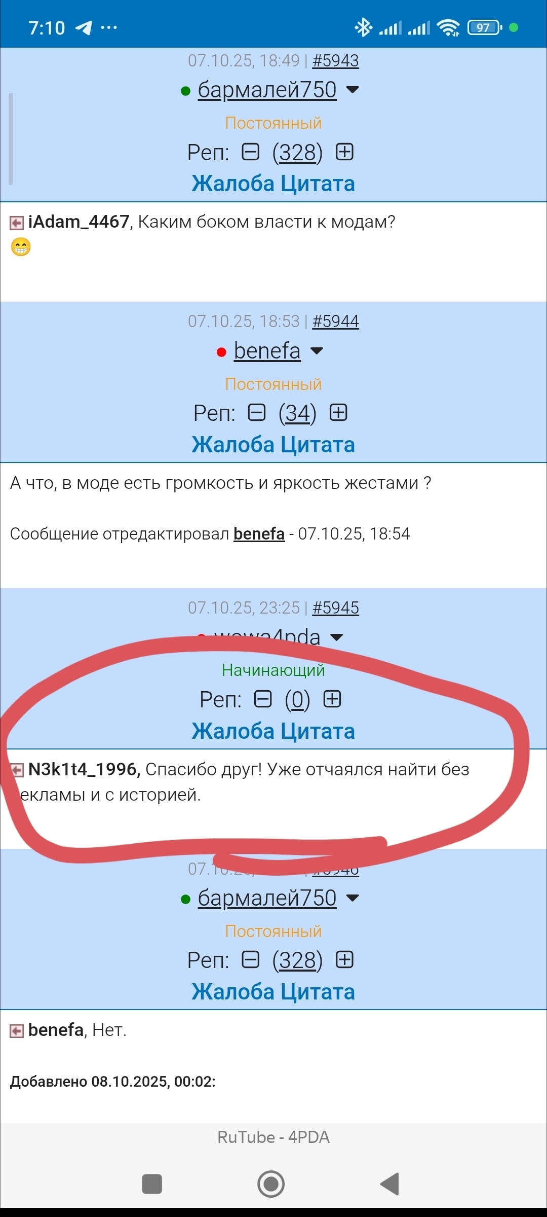 Есть ли у кого-то информация, что произошло с веткой Rutube для android на форуме 4pda?