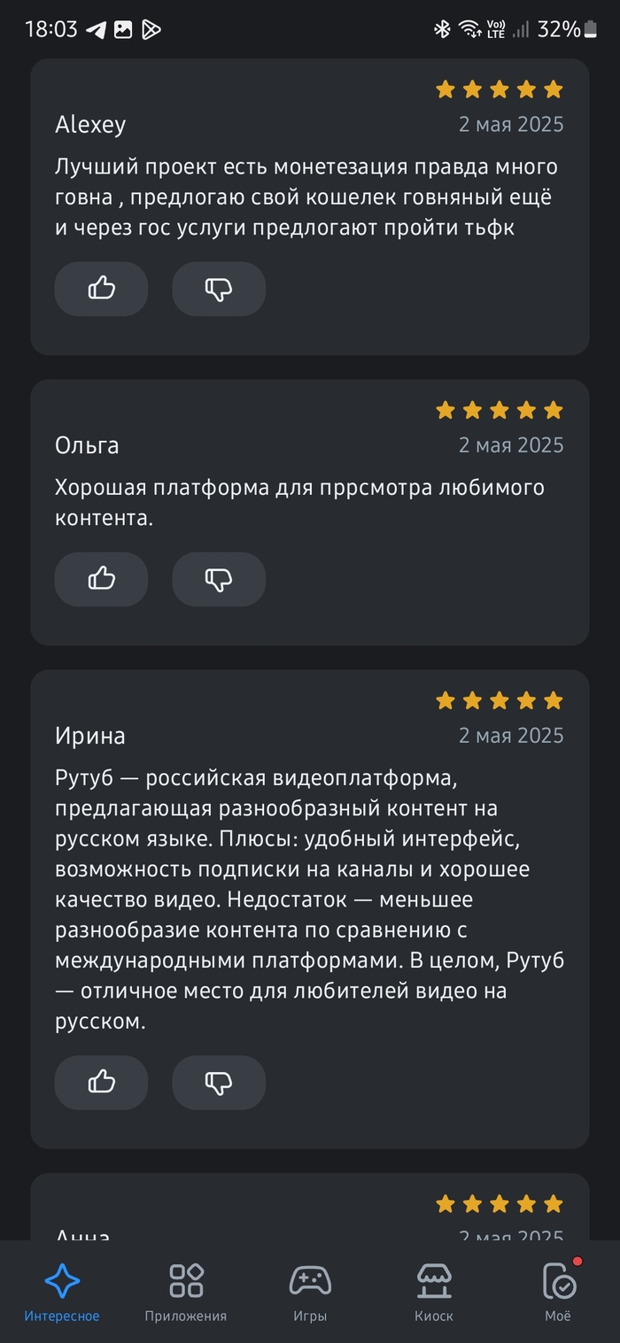 Winchester163 5 месяцев назад Rutube накручивает рейтинг В наглую накрутить рейтинг. Пожалуйста. Вставить 2 рекламы в 5 минутный ролик. Дайте две.Просто тонны отзывов с оценкой 5 звезд сыпятся с 20 апреля 2025 года. Без рейтинга RUTUBE Длиннопост 1 Ещё 0