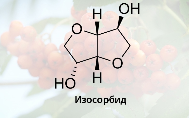 Изосорбид является бициклическим соединением (состоит из двух фурановых колец), имеет вид сильно гигроскопичных белых хлопьев, которые плавятся при 63 °C, в связи с этим используется как увлажнитель и находит применение в медицине в качестве осмотического мочегонного средства. Продукт нитрования изосорбида обладает сосудорасширяющим действием и применяется в лечении стенокардии, а простые изосорбидные эфиры всё чаще используются в качестве возобновляемого растворителя для косметических и фармацевтических препаратов. В целом, изосорбид — это универсальный продукт, получаемый из возобновляемых ресурсов в промышленных количествах, который также представляет большой научный и технический интерес как мономерный строительный блок для биополимеров.