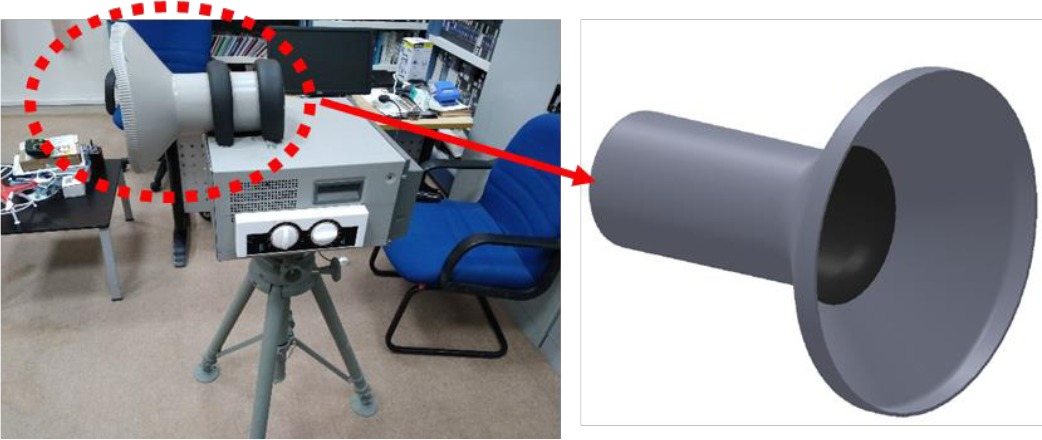 Side and top view of the conical horn antenna (Antenna Magus).