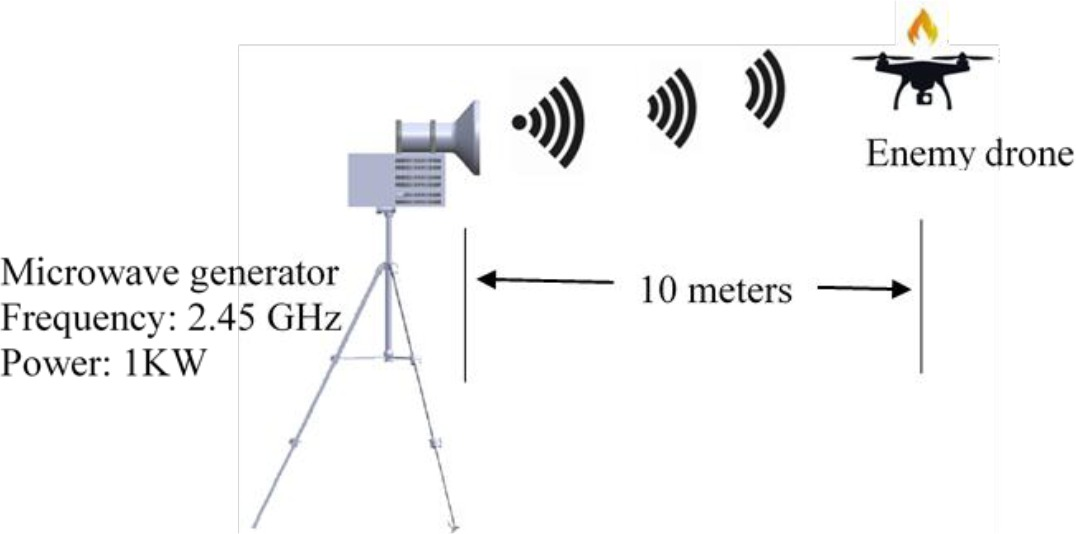 According to the experiment phase, the time needed to stop the rogue drone is related to the output microwave radiation and power, the firing duration, and the magnetron’s efficiency.
