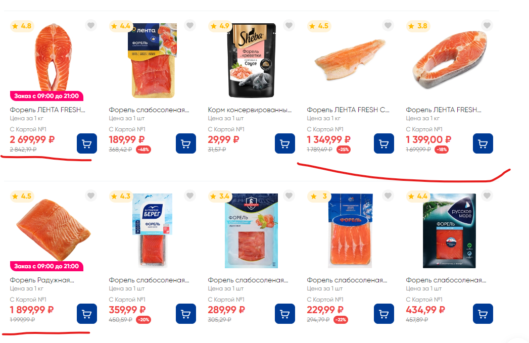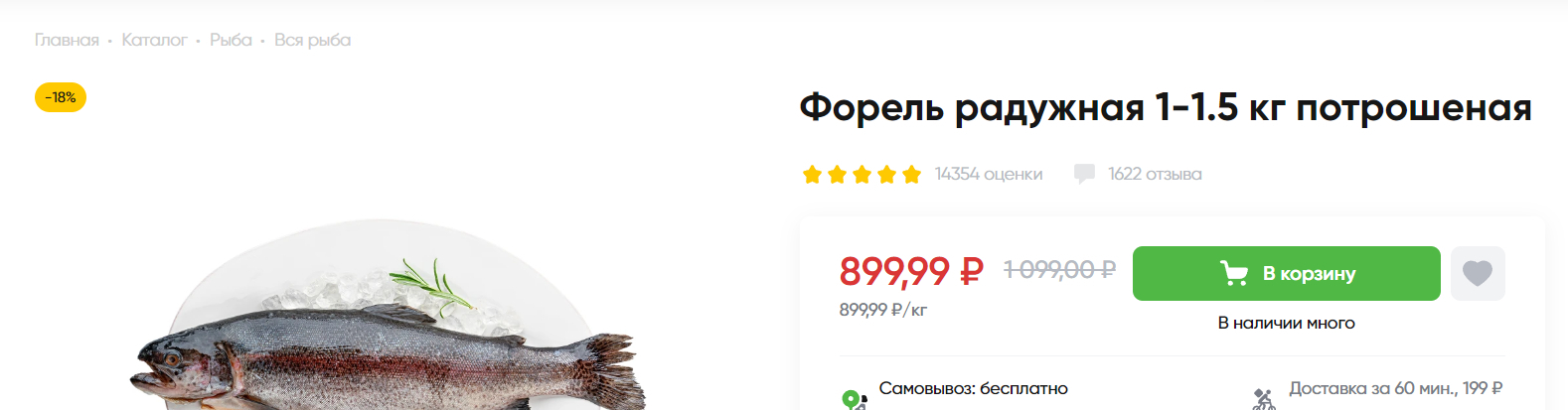 Ну вот всё же в ней прекрасно кроме цены. 2 000 ₽ за кг? Так и хочется спросить — ты вообще форель или проститутка элитная?
