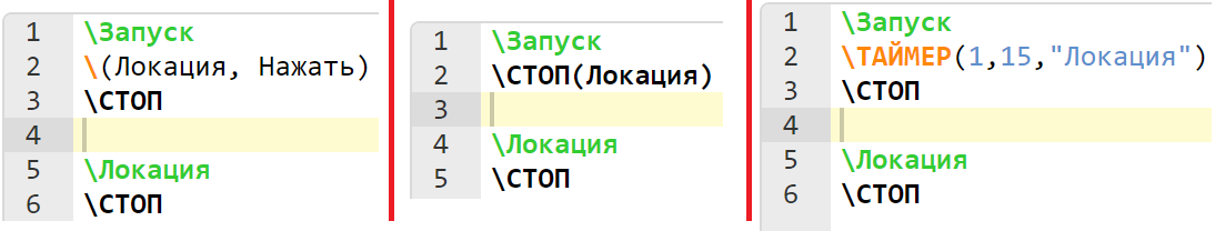 Отвечаю: команда \(Локация, Идти) это по сути обычная кнопка, что работает только по нажатию. Команда \СТОП(Локация) работает даже без участия игрока. Она так же как и команда \СТОП, останавливает выполнение кода (в текущей локации), при этом переводя игрока на другую (указанную ранее) локацию. Команда \ТАЙМЕР(1,15,"Локация") тоже делает нечто подобное, только при достижении указанного в ней лимита времени. В нашем случае 15 секунд.