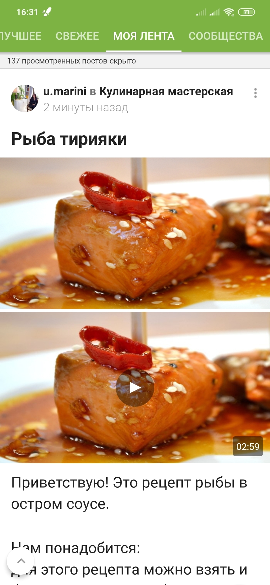 3.Пост-видео, пост-ссылка или пост-фото без подробного текстового рецепта будет перемещён в общую ленту.