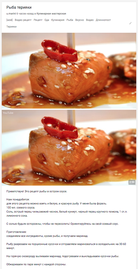 Текстовый рецепт без фото или видео сопровождения также переносится в общую ленту. Рецепты, публикуемые в Кулинарной Мастерской должны носить практический характер, особенно, для начинающих кулинаров.