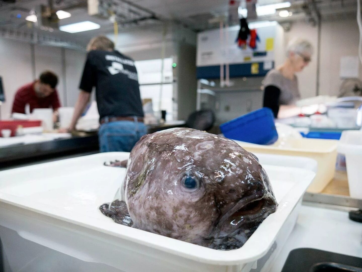 Так что все эти мемные фотки грустных желеобразных страшилищ показывают нам не настоящую рыбу-каплю, как она есть, а то, что происходит с тушкой этого создания после её подъема на поверхность. Понимаете теперь, почему на фотках они такие страшные? Просто вся их анатомия до последней клеточки заточена под глубоководную жизнь, но никак — для поверхности!