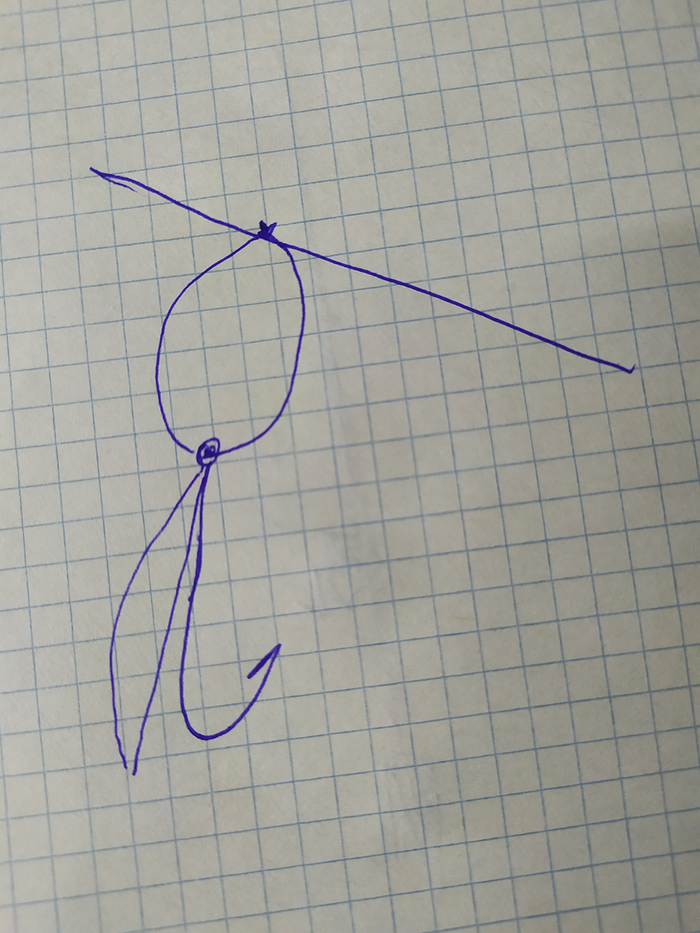 Вязке научили москвичи). Грузило 18 грамм, от грузила отступаем 25-30 сантиметров и привязываем длинный поводок 50-80 см с крючком на конце. Цепляем силикон, техника ловли как с самодуром. Берет ставрида весом от 100 грамм.