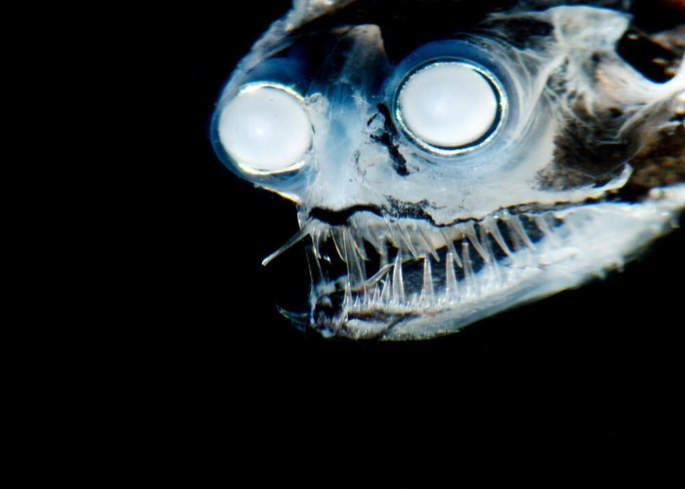 Это существо выглядит как порождение самых мрачных ночных кошмаров, вынуждающих просыпаться в холодном поту. Огромные глаза-трубки, светящиеся в темноте. Пасть, усеянная зубами-иглами. Способность заглатывать жертв крупнее себя. Нет, это не инопланетный монстр, а земная глубоководная рыба-телескоп (род гигантуры), один из самых жутких хищников океанских глубин.