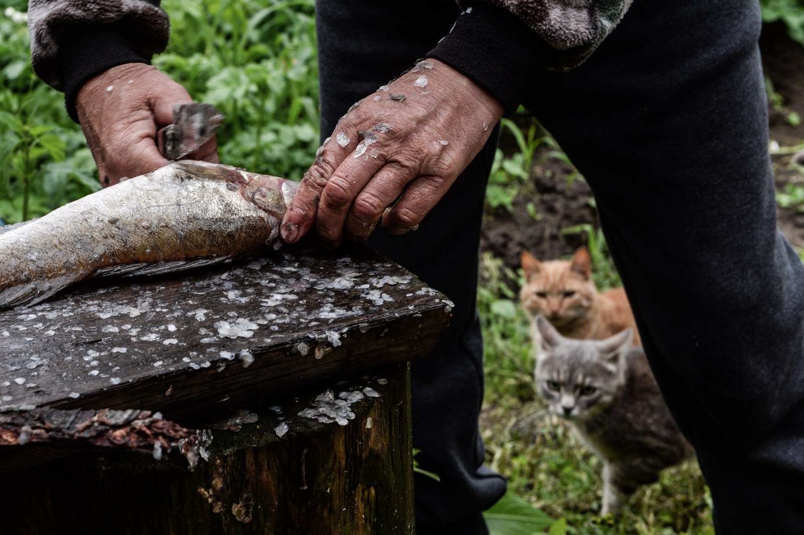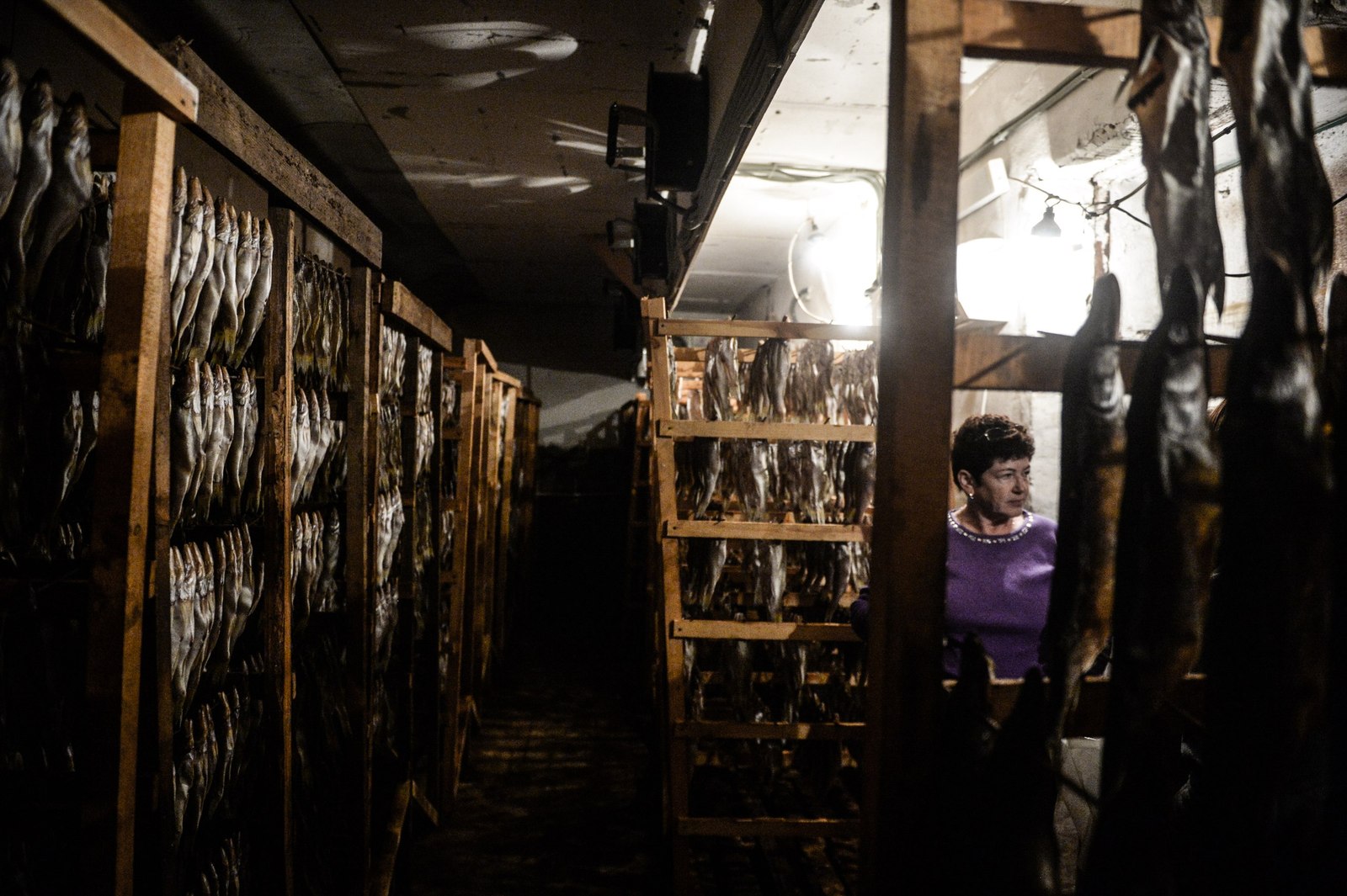 Сушка рыбы на заводе. В августе 1873 года по дороге из Петербурга в Старую Руссу Фёдор Достоевский пишет жене: «Взвад стоит на припёке, тени нет, строения богатые, живут зажиточно. Вонь во всех домах, чрезвычайно в то же время чистых, нестерпимая. Пахнет вялеными снетками, ибо в каждом доме под крышей устроена вяление снетков».