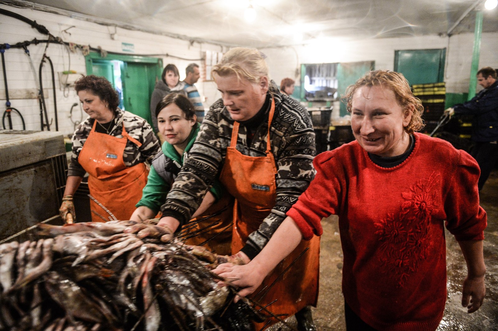 Расфасовщицы рыбы на заводе «Красный рыбак»