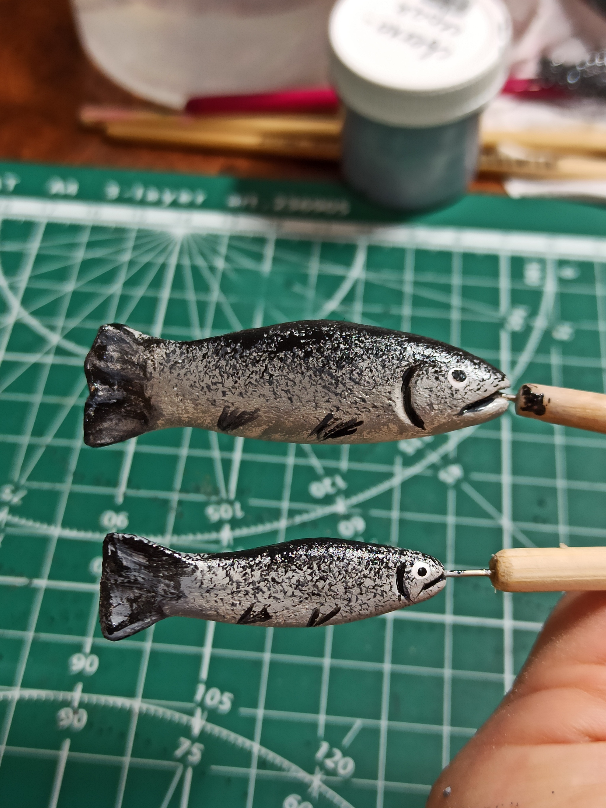 Я сейчас лечу перфекционизм😂, потому не стала доводить их до совершенства и "вылизывать". Рыб вообще почти не будет видно, но вот не могу я не побаловаться деталями, обожаю это 😖😁