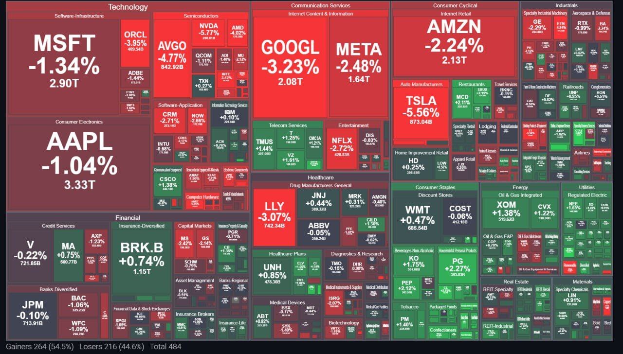 Американские фондовые фьючерсы упали в четверг после того, как президент Дональд Трамп объявил о введении 25-процентных тарифов на все автомобили иностранного производства. Новые пошлины, которые вступят в силу 2 апреля, совпадают с ответными тарифами, направленными против стран, которые вводят свои собственные пошлины на американские товары - меры, которые, по словам Трампа, будут действовать в течение всего его второго срока. Акции General Motors и Ford упали на 6% и 5% соответственно после объявления. Неопределенность на рынке относительно масштабов тарифов и возможных ответных мер подогрела волатильность и вызвала опасения относительно более широких экономических последствий. На регулярной сессии в среду индексы S&P 500 и Nasdaq Composite снизились на 1,12 % и 2,04 % соответственно, что было вызвано резким падением акций технологических компаний. Доу снизился на 0,31 %. Лидерами падения стали технологические компании-мегакапы, включая Tesla (-5,6%), Nvidia (-5,7%), Meta (-2,5%), Palantir (-4,4%) и Amazon (-2,2%).
