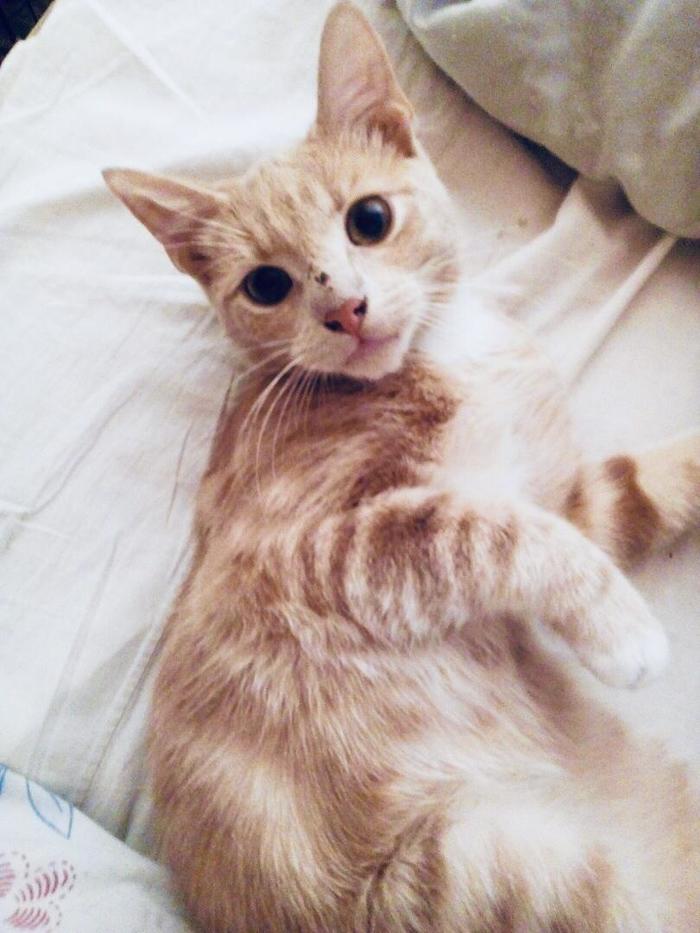 Рыжий-рыжий, полосатый, никого не убивал. Хотели убить его. Ищет дом.