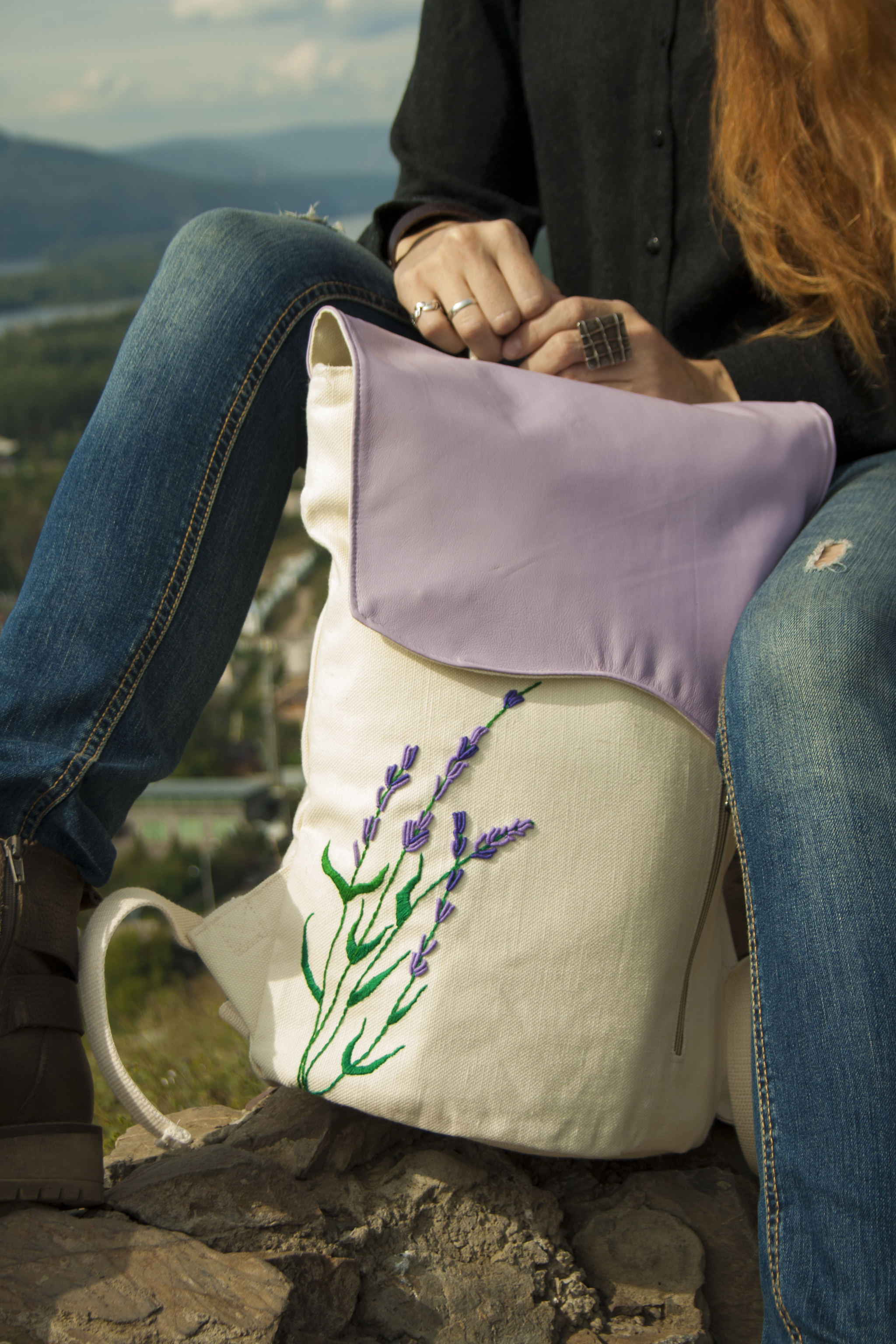 Первым в списке у нас идет рюкзак, под названием "Чистый лист". Клапан - натуральная кожа, сам рюкзак из 100% льна.