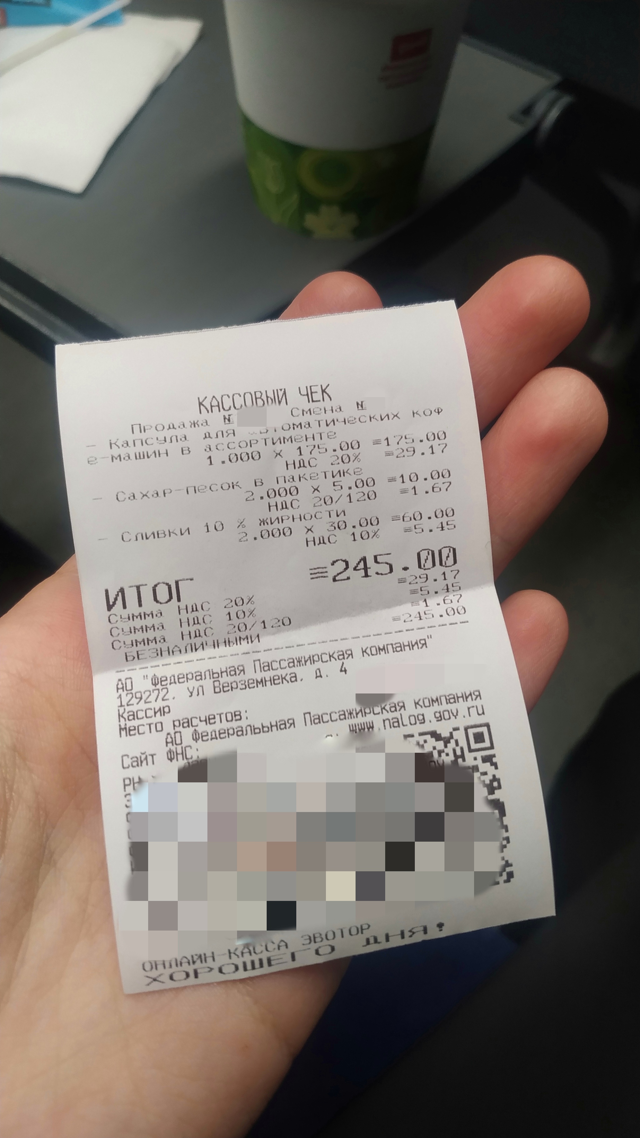 Пробивают, смотрю чек, а там почему-то 245. Представляете, они пробивают отдельно те самые сахарные пакетики, которые даже у вендинговых аппаратов в свободном доступе лежат, бери сколько хочешь. Сливки ладно, но тоже было бы славно предупредить.