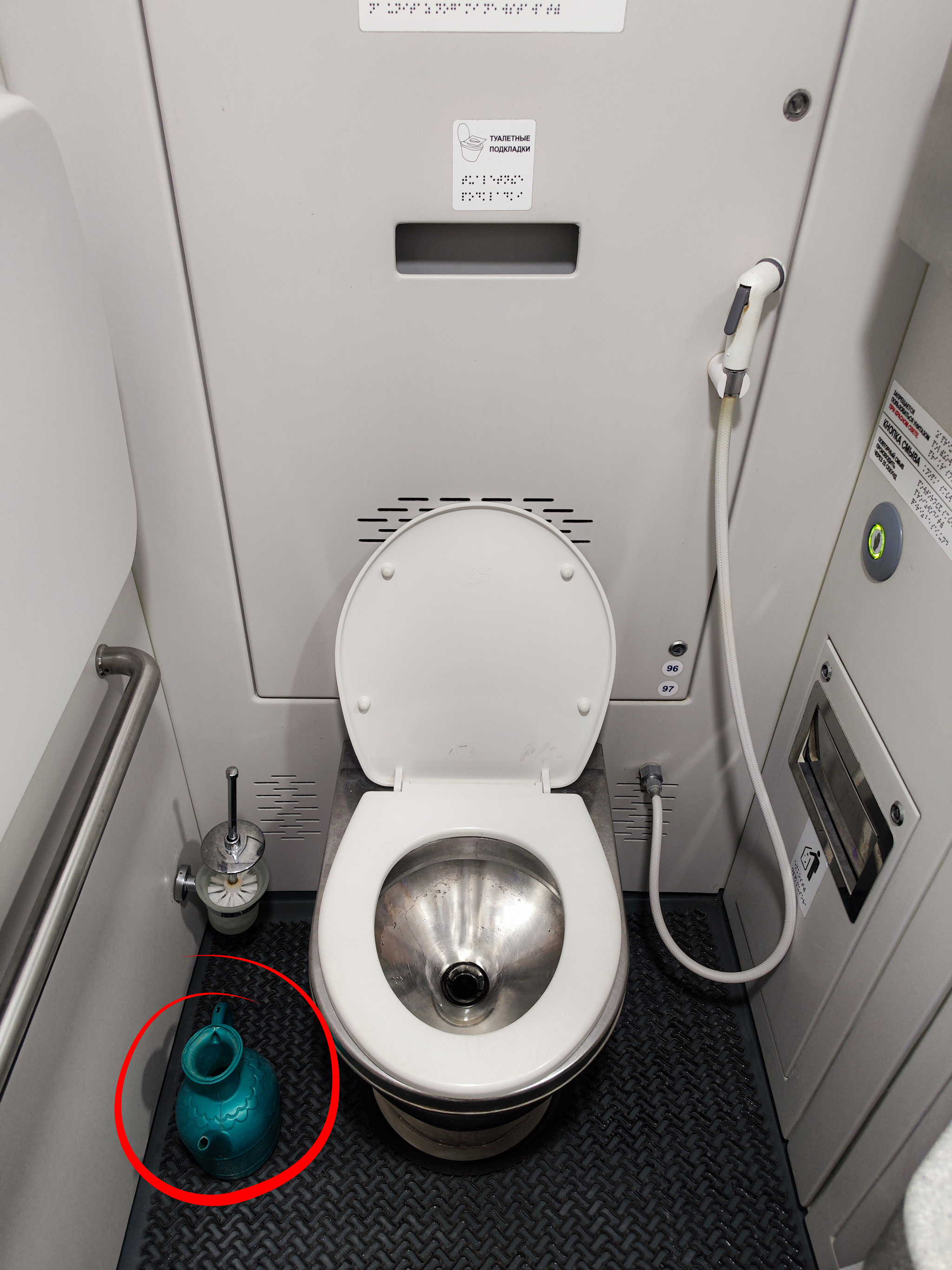 Ладно когда традиция не мыться, но держать жопу в чистоте соблюдается где-нибудь у них дома. Ходят они там, сами себе по жопе говно размазывают, а потом не могут руки отмыть. Но какого хрена этот кувшин делает в каждом туалете поезда, мать вашу? Я именно про кувшин! И это при наличии интимного душа.