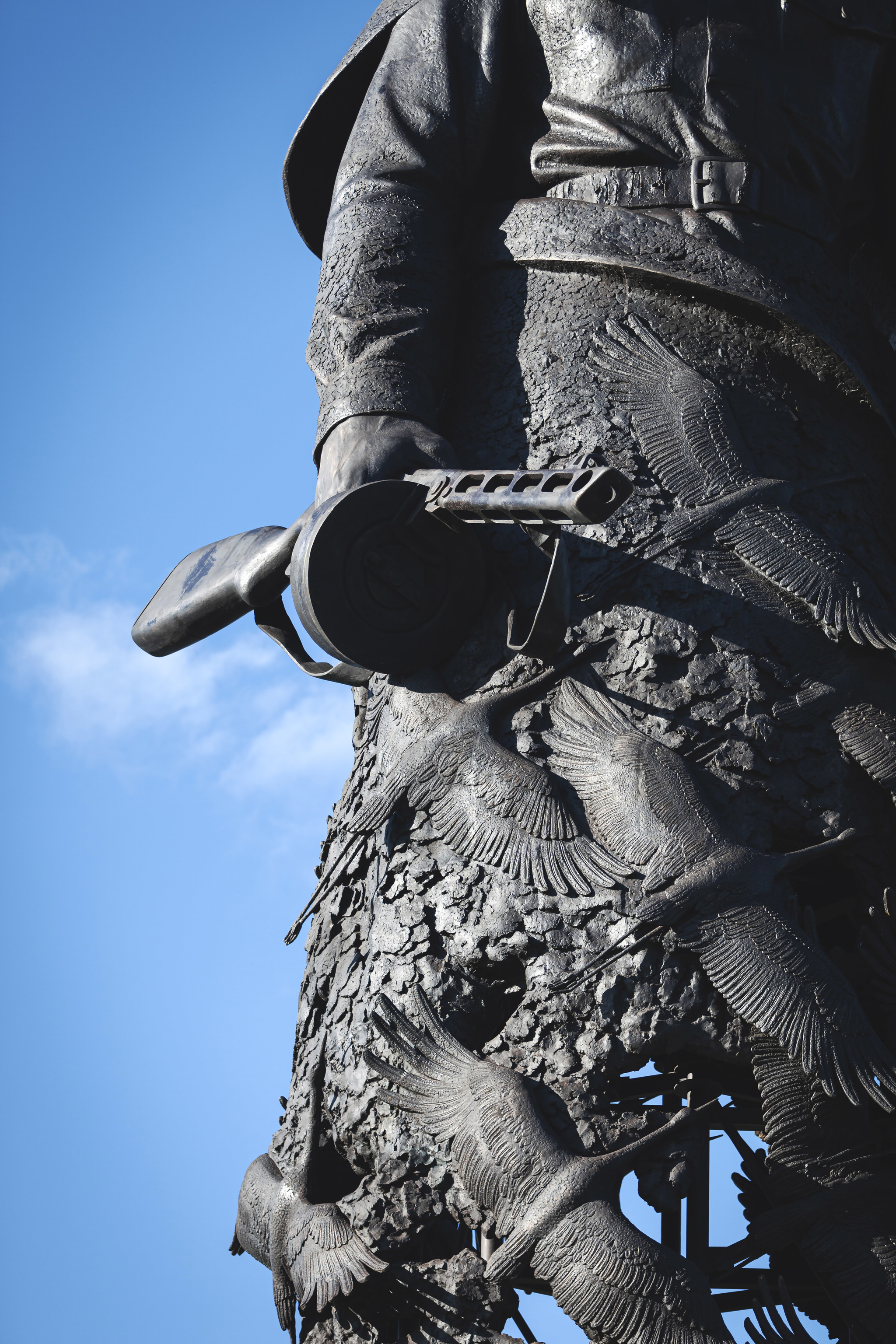 Главным объектом мемориала является 25-метровая бронзовая скульптура солдата, возведенная на насыпном кургане. Она воплощает собирательный образ бойцов, воевавших подо Ржевом. Солдат в гимнастёрке с опущенным пистолетом-пулетом ППШ в одной руке окутан стаей из 35 журавлей, создающих иллюзию парящей скульптуры. За спиной развевается плащ-палатка, переходящая в журавлей, уносящих душу солдата. На мраморной плите с венком нанесены строки из стихотворения «Я убит подо Ржевом» Твардовского — «Мы за Родину пали. Но она — спасена».