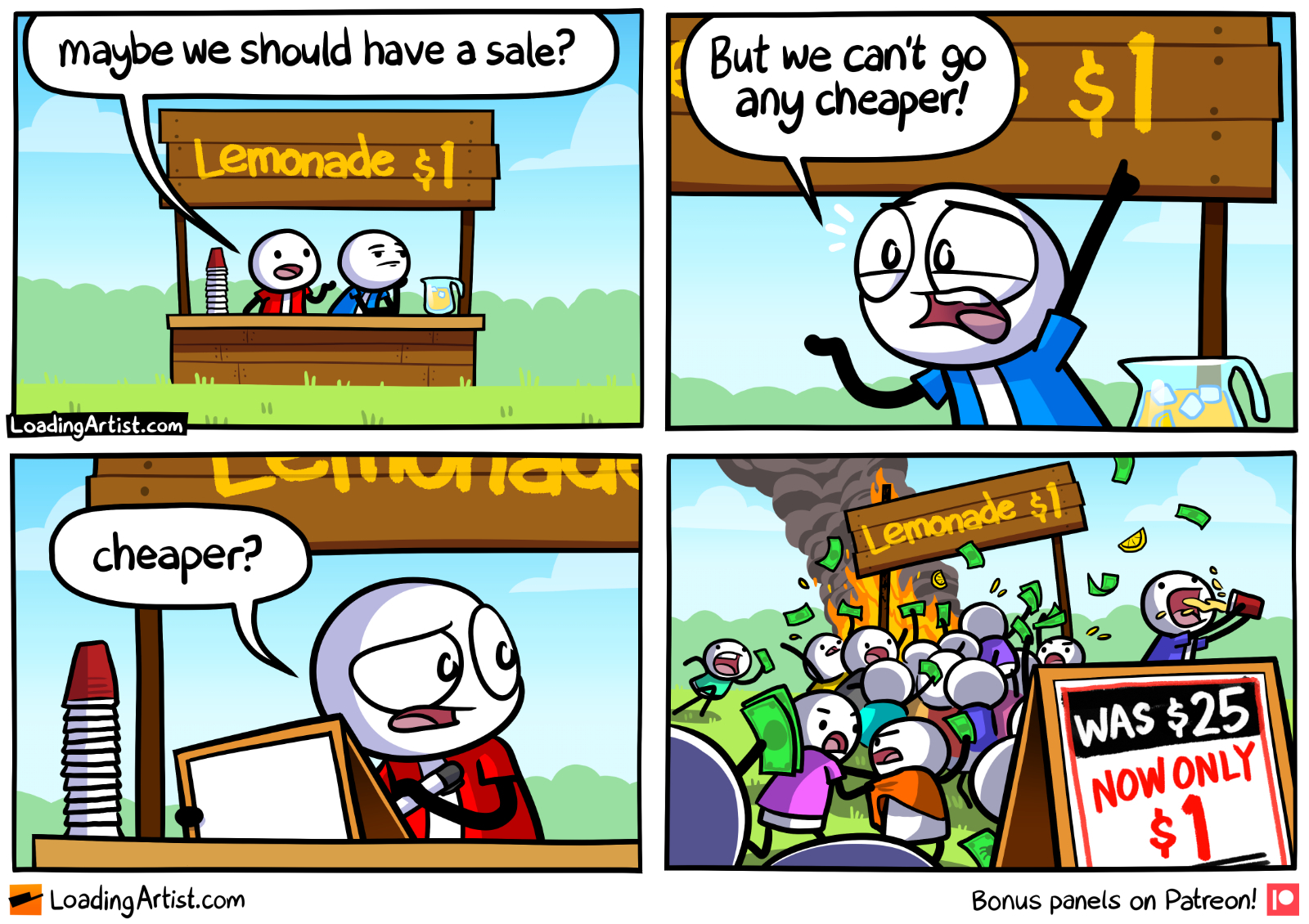 В оригинале там было 25 центов, а теперь доллар. И весь юмор в том, что они не могут дешевле, но могут дороже.