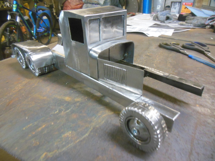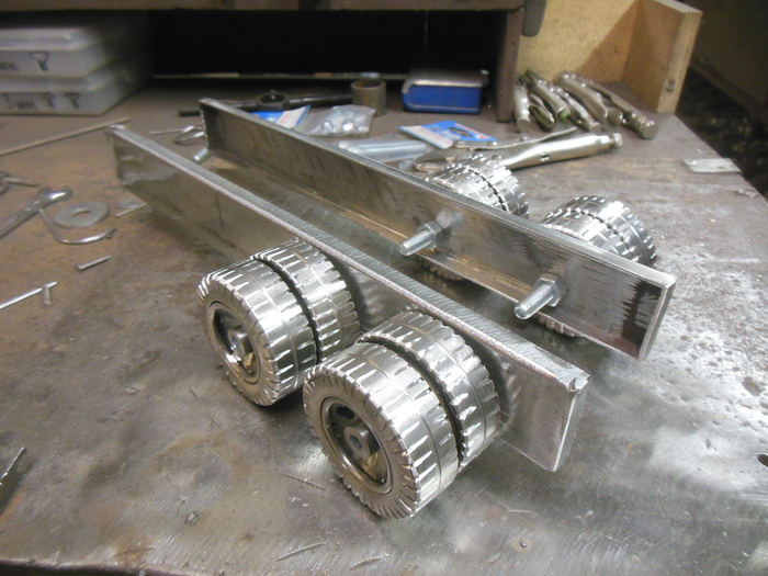 История очень долгая. Было много согласований и много переделок.Как делал рамы не очень интересно. Труба профильная 40*20 и из неё сделал нужную конфигурацию. Как видно на фотографиях делались колёсики из двух труб. Протектор пропиливал болгаркой. Для интереса подсчитал сколько раз пришлось пропилить. Получилось больше семи тысяч раз.