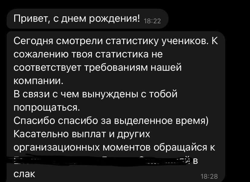 0 MEMEzya С др, ты уволен 2 года назад https://t.me/memezya/3356 Картинка с текстом Переписка Скриншот Работа Увольнение День рождения 1 Ещё 0