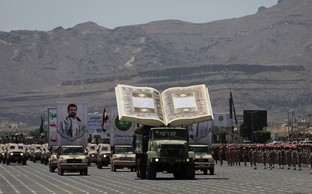 ..проход механизированных колонн открывал грузовик КрАЗ со стилизованным Кораном в кузове и пикапы "Тойота" 70-й модели с портретами лидеров Революции, слоганами и лозунгами движения "Ансар Аллах".