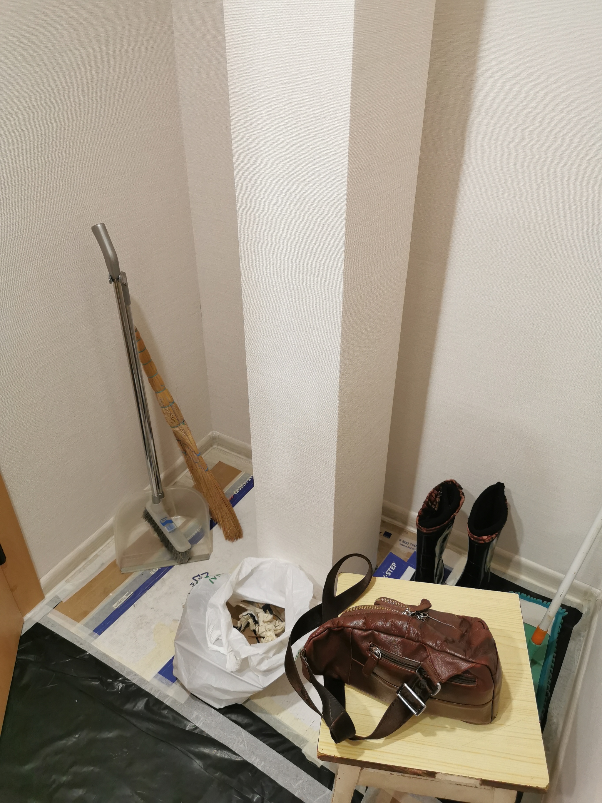 И тут важно сказать пару слов про сами такие дома. Строились они в 80-е года руками солдат под присмотром прапоров. Итоговый результат можно отнести не к конструктивизму, не к ампиру и даже не к барокко - скорее подойдет стиль, называемый "пахорукко". В некоторых из этих домов нет лифта до последнего этажа, где-то плиты с перепадами по 5 см или с уклоном те же 5 см на 1 м длины уложены, но есть и общий забавный дефект. Несмотря на то, что стояк ливневой канализации является общедомовым имуществом, именно тут он проложен прямо внутри коридора квартир.