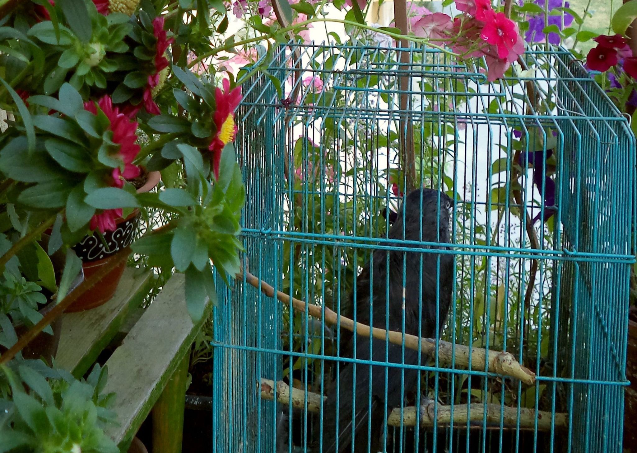 Живёт у меня галка, пол не известен, но считаю её дамой. Живёт уже 12-й год, я подобрала её на улице, у неё сломано крыло. Сидит в попугайной клетке на толстой жёрдочке. По первости я её выпускала ненадолго из клетки, но так как сия дама редкостная засранка и разрушительница, я перестала её выпускать. Характер дикий, натура крикливая, сквозь прутья клетки щипает котов и собаку, больно клюёт (защипывает) мои руки во время гигиенических процедур, обожает полоскать голову в чашке-поилке. Разборчива в питании: помимо пшена никаких круп не признаёт, любит отварную курицу, но не белое мясо, а крылышки, шеи, копчики. Косточки обгладывает начисто. Не всякий сыр ест, любит творог и груши, зелёный и жёлтый виноград, но чёрный не ест категорически. Мытьё в тазике в ванной сопровождается оглушительными криками - будто орёт воронья стая. Зато когда у неё хорошее настроение, она поёт радостные песни.