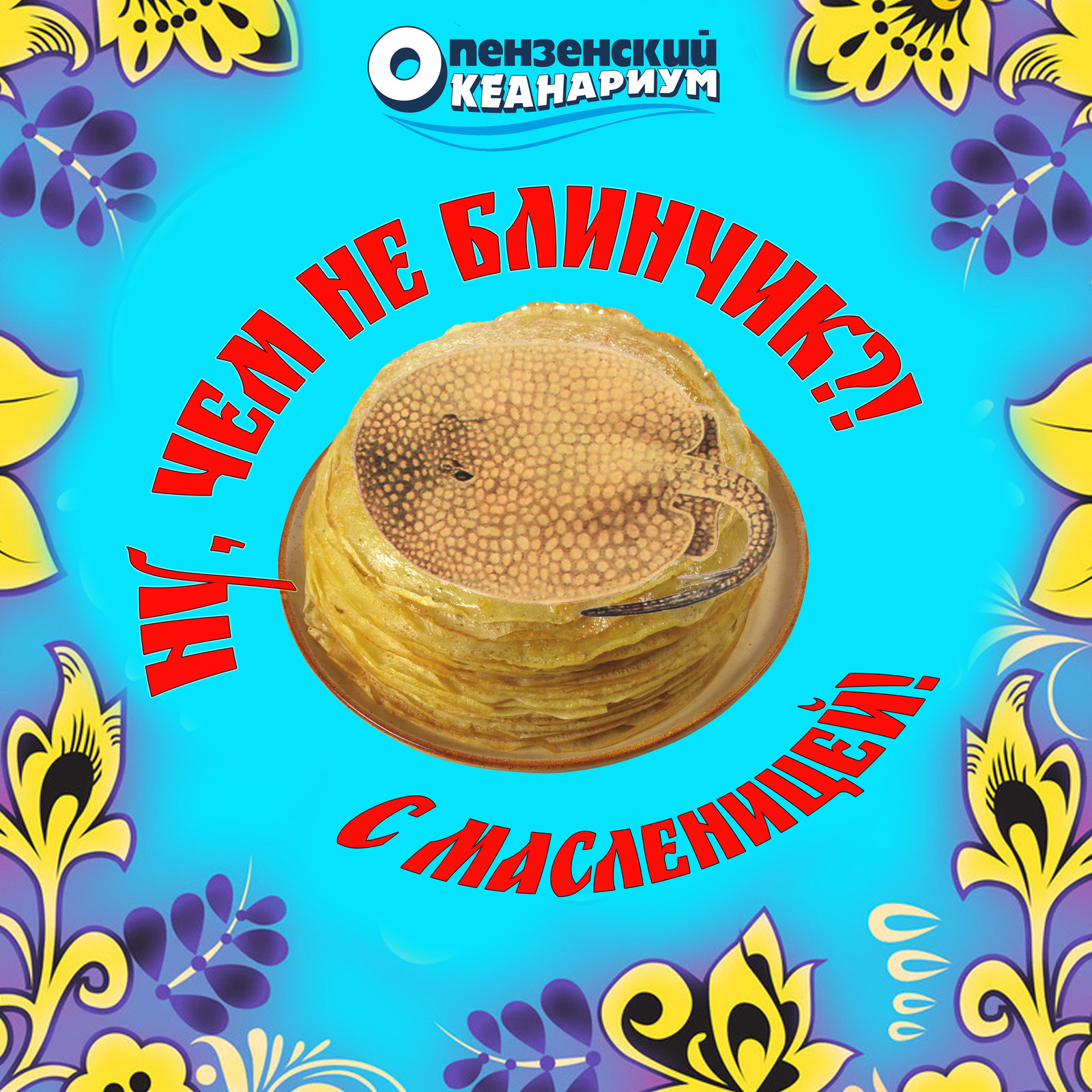 34 oceanpnz Аква Лига | Aqua League С масленицей! 6 лет назад Присмотритесь к этой открытке повнимательнее. Увидели? На самой верхушке аппетитной стопки блинов притаился пресноводный скат. Вот это я понимаю, масленичная маскировка! Впрочем и на песчаном дне он прячется не хуже. [моё] Пензенский океанариум Масленица Скат Рыба