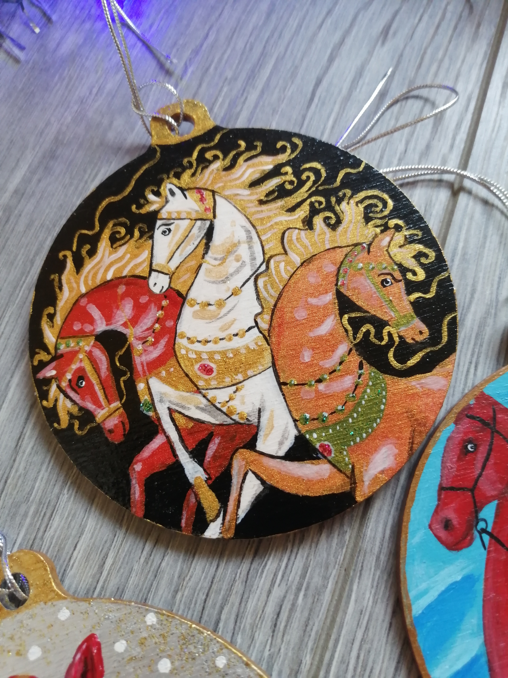 Поменьше размером и фигурные. Размер 6-7 см, акрил по дереву, текстурная паста, блестки.