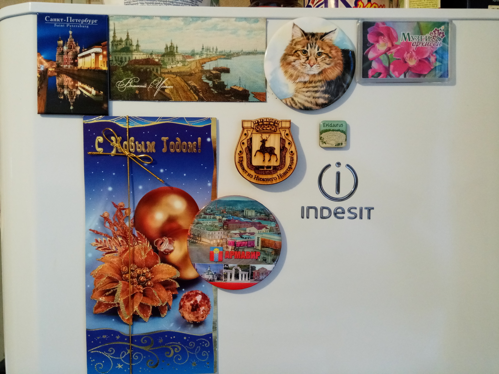 Кстати, тут же висит магнитик и открытка, которые получил мой муж от своего Тайного Санты)))