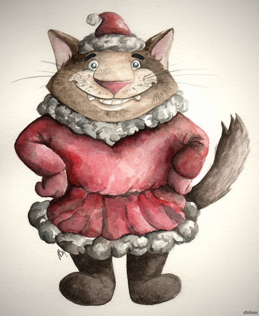 10 Artunite С Наступающим от Кота Мороза 11 лет назад [моё] Творчество Акварель Новый Год Праздники