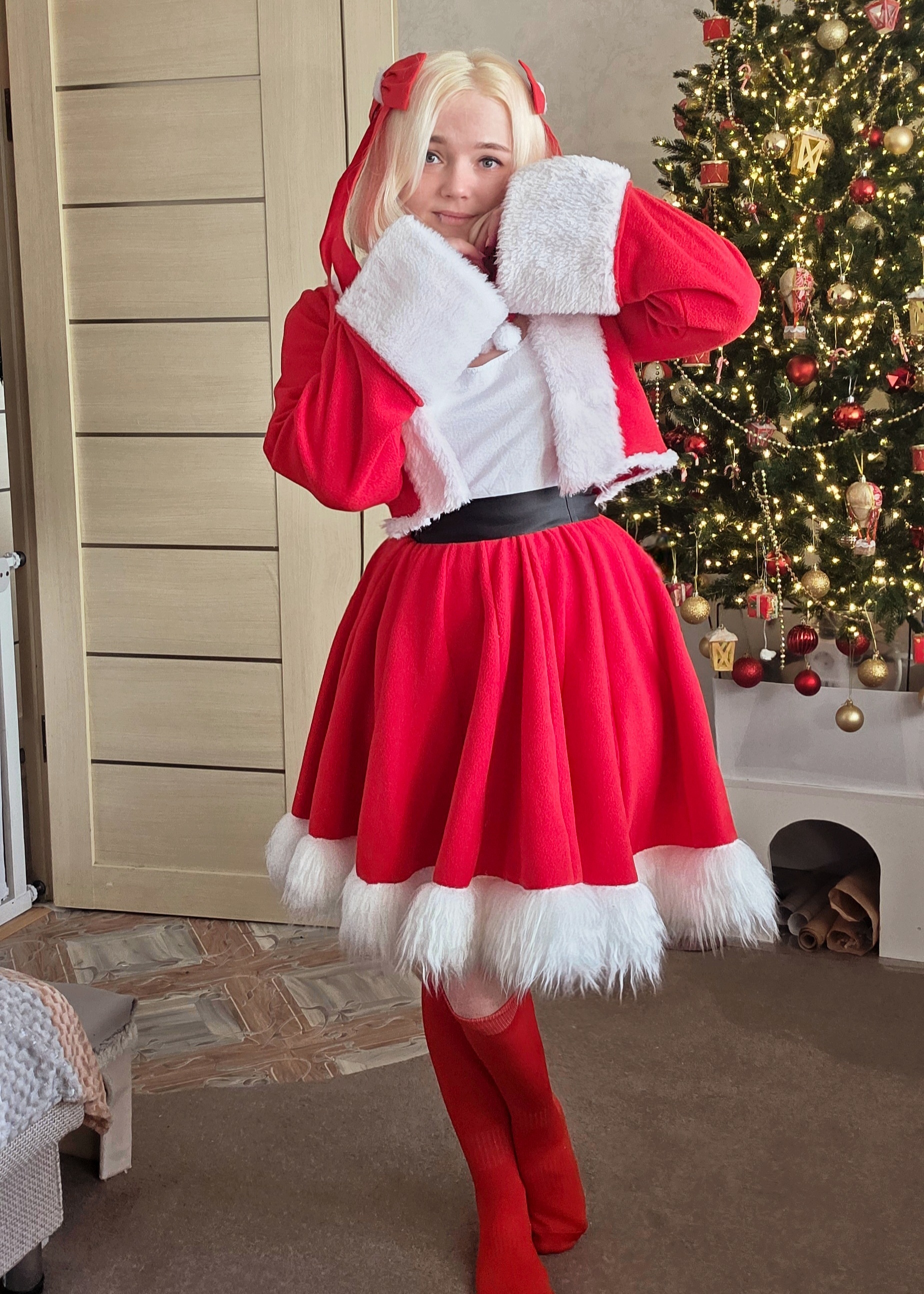 Материалы: флис, искусственный мех, сатин (бантики), кожзам (ремень). Майку сшила из старой футболки)