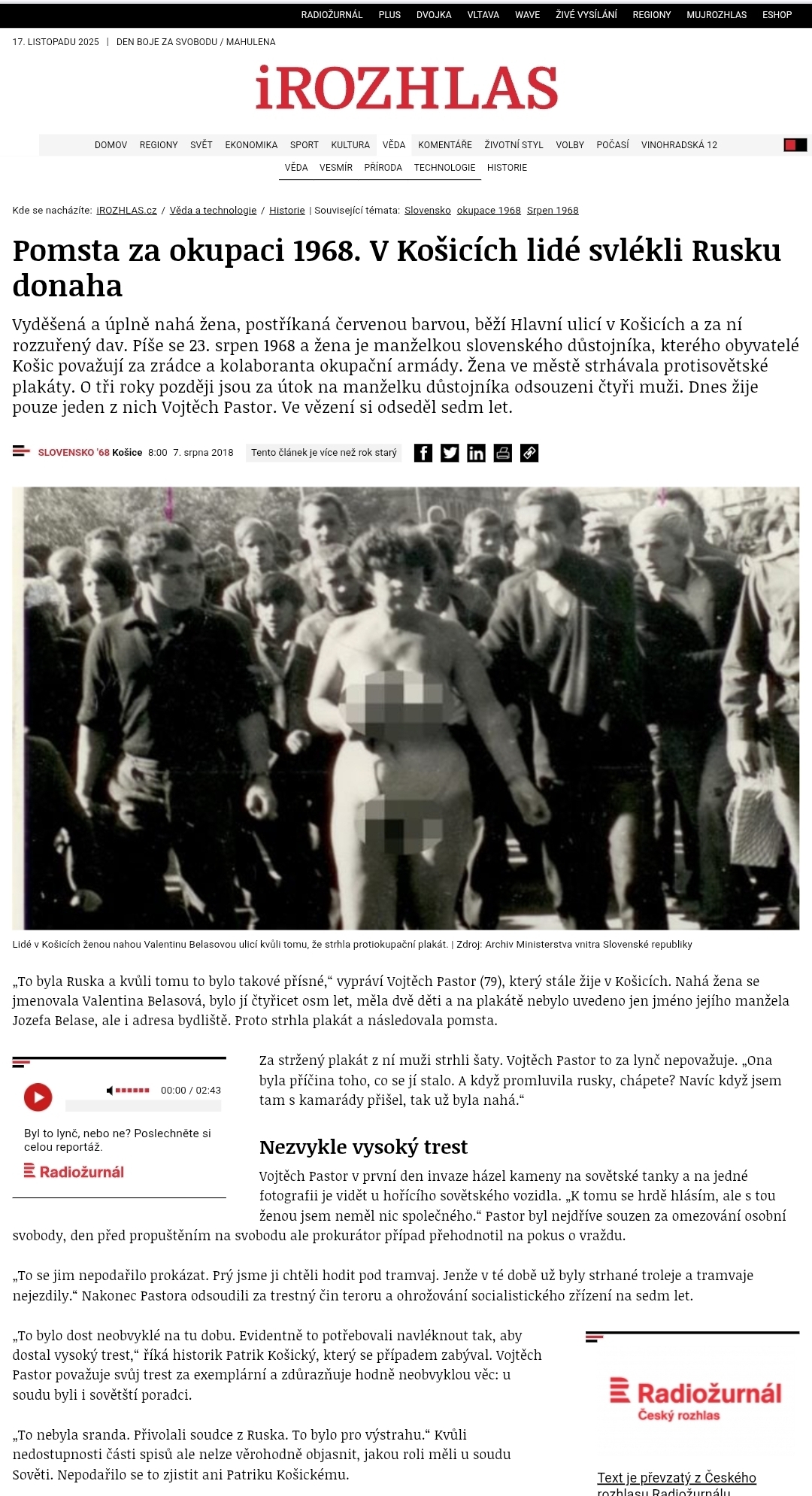 Молодчики, неработающие несколько парней словаков, как минимум один из которых был участником протестов против введенных советских войск, сорвали одежду. С Валентины.