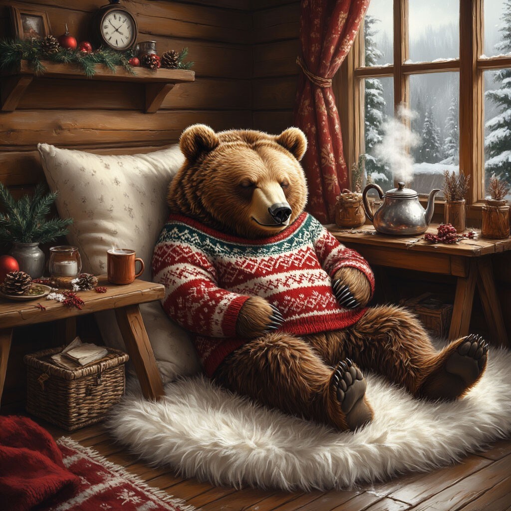 Добродушный медведь 🐻, который, кажется, уже предвкушает вкусные угощения и уютные вечера у камина. Он такой теплый и пушистый, что хочется обнять!