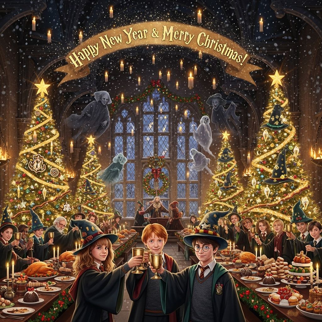 Пусть новый год будет полон чудес, как ночь в Хогвартсе: совы приносят только хорошие новости, котлы кипят от удачных идей, а палочки слушаются с первого взмаха.