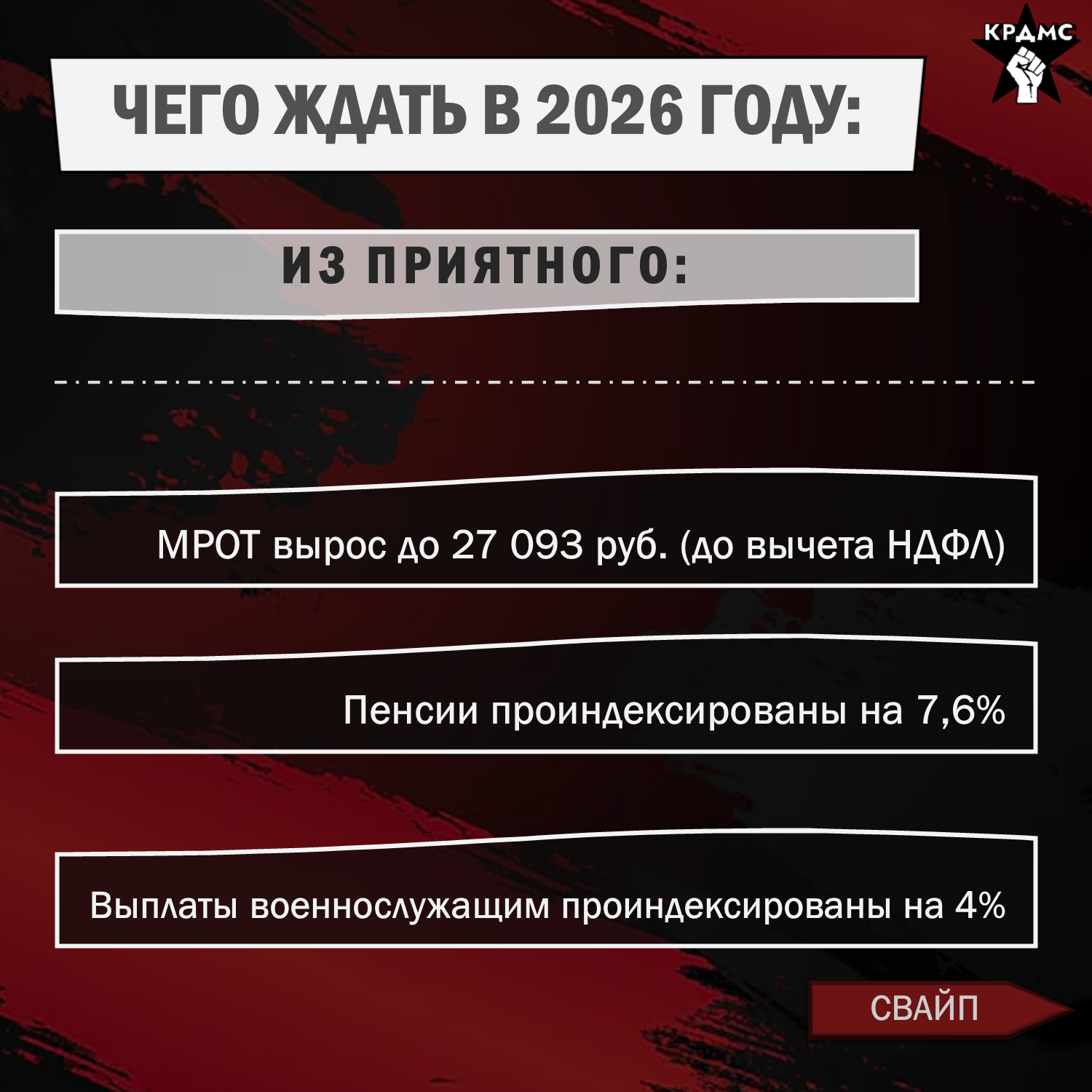 Новогодние праздники начинают подходить к концу. Самое время подумать о главном: что изменится в 2026 году для россиян? По классике нас ожидает калибровка цен, тарифов, налогов и, конечно, несчастного МРОТ. Но о самом интересном мы поговорим в конце.