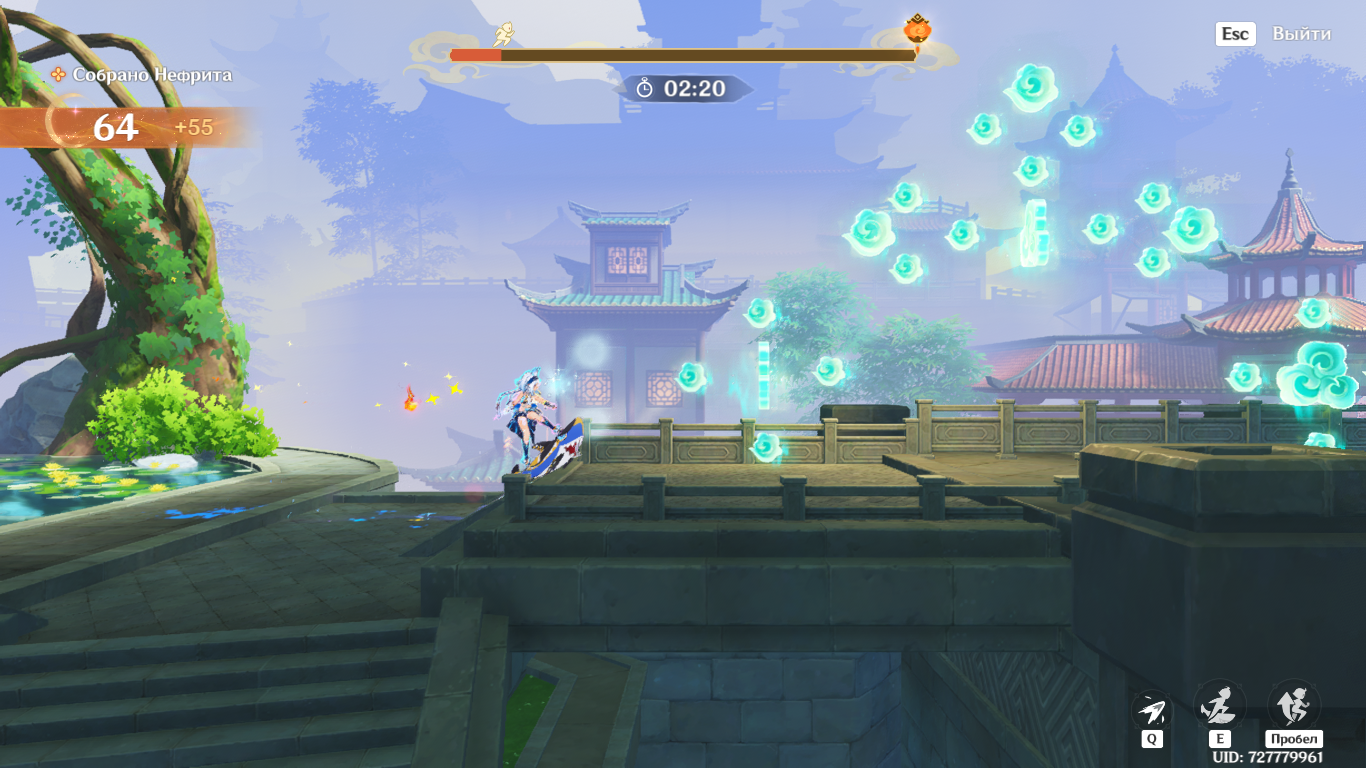 Вот как по мне лучший "аттракцион" в ивенте. Можно расслабитья и просто нажимать клавиши движения, стрельбы и прыжка. И собирать нефрит, так как от количества зависит очки и соответственно награда.