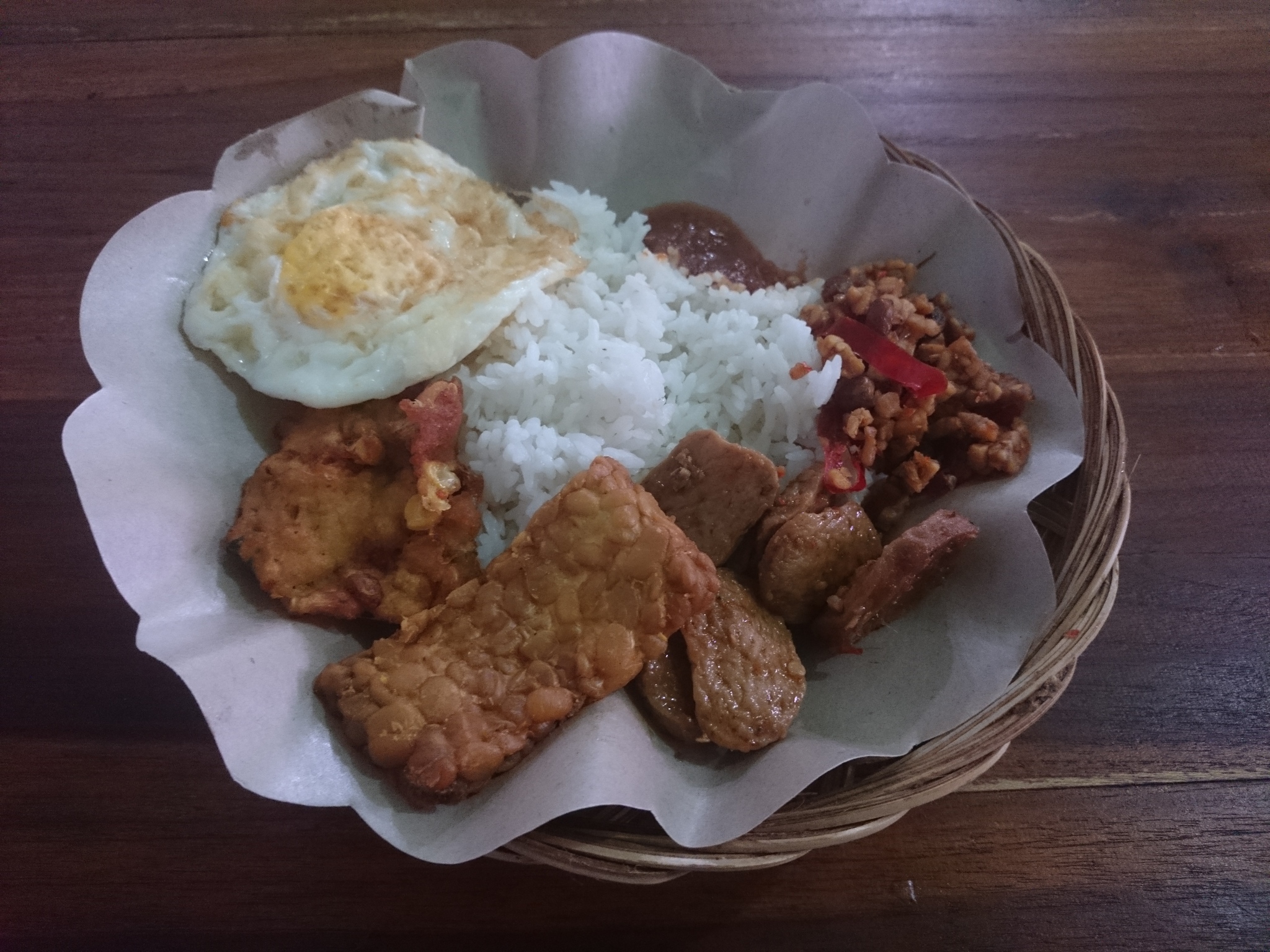 Зато здесь есть много заведений по типу буфета. Называют это, если не ошибаюсь, Padang food. Там вы берете тарелку с рисом, а дальше вольны накладывать себе все что угодно –мясо, курицу, рыбу, овощи, орехи, всякие разные ништяки. В зависимости от порции в среднем выходит около 20.000-30.000 IDR (1$ = 13.000 IDR). Из напитков в таких местах популярен сладкий чай со льдом за 3.000-4.000 IDR. IDR - Индонезийская рупия.