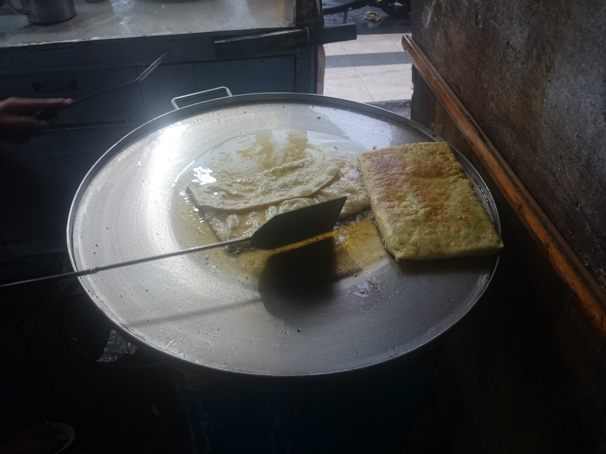 В этот же вечер попробовали местное блюдо, название я не помню, но это некая лепешка с курицей внутри. Готовилось это все в море масла, так что мне не очень понравилось. Слишком масляное нечто.