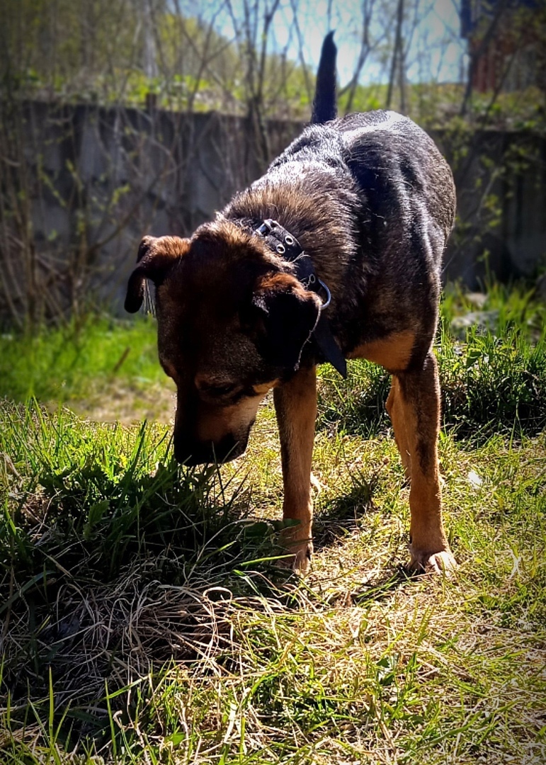 Пока что Цыган вынужден выживать в вольере муниципального приюта, самая большая радость для него - редкие прогулки с волонтёрами.