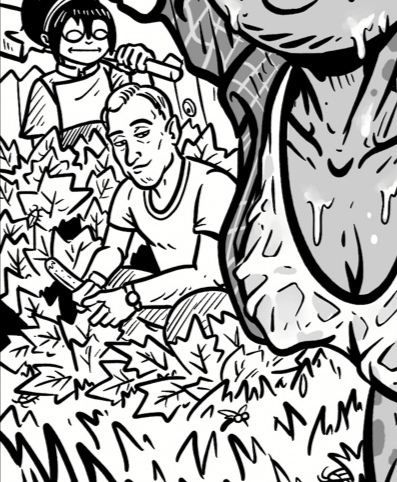 Огурец понятно) но за бабка с лопатой за ним стоит???