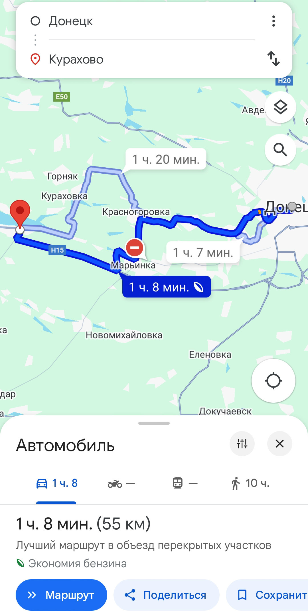 Расстояние между Донецком и Курахово - 55 километров. Один час восемь минут на автомобиле согласно Google maps. Одна тысяча дней.