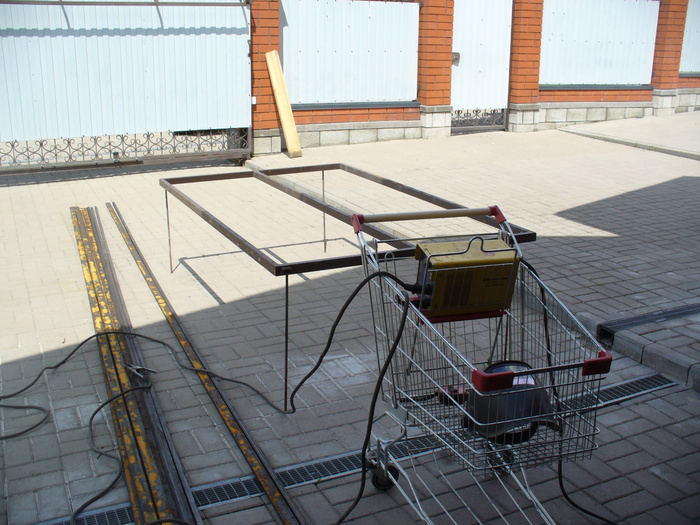 Свариваю конструкцию. Учитывая размер материала, длинна конструкции получается 2 метра.Что бы отходы минимализировать.